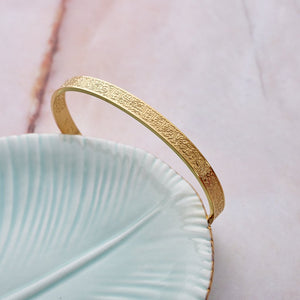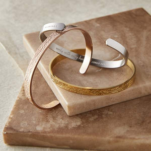 Considéré comme le verset le plus puissant du Coran, Ayatul Kursi est connu pour apporter protection et sécurité. L'ajout de ce verset magnifique et sentimental à nos bijoux s'est avéré être une réussite. Nous sommes fiers de l'introduire maintenant dans notre collection de bracelets. Gravé entièrement à l'avant et se poursuivant sur le dos pour offrir une esthétique magnifiquement complexe, ce bracelet est devenu l'un de nos designs les plus détaillés de l'histoire de Jamilah™.
