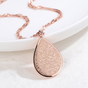 Considéré comme le verset le plus puissant du Coran, Ayatul Kursi est connu pour apporter protection et sécurité. L'ajout de ce verset magnifique et sentimental à nos bijoux s'est avéré être une réussite. Nous sommes fiers de l'introduire maintenant dans notre collection de colliers..